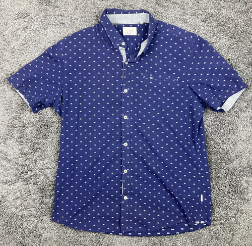 7Diamonds Atlas Short Sleeve Button Shirt Men’s Blue Pattern Size L